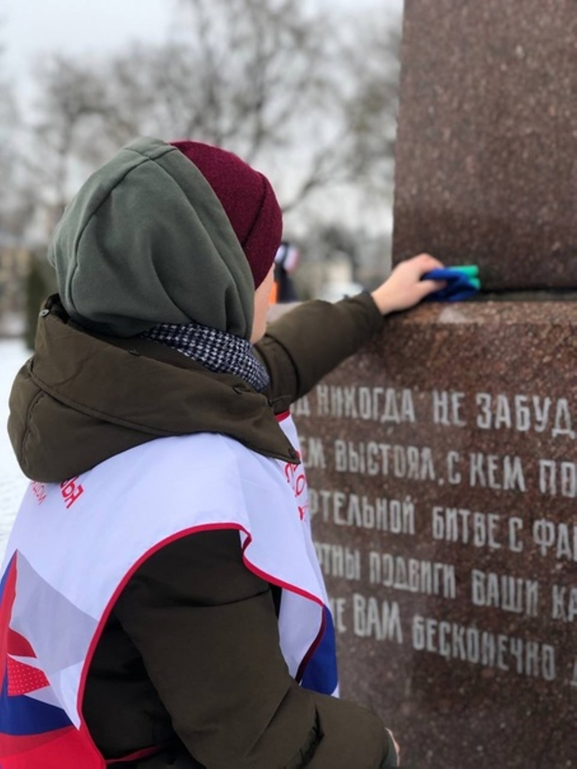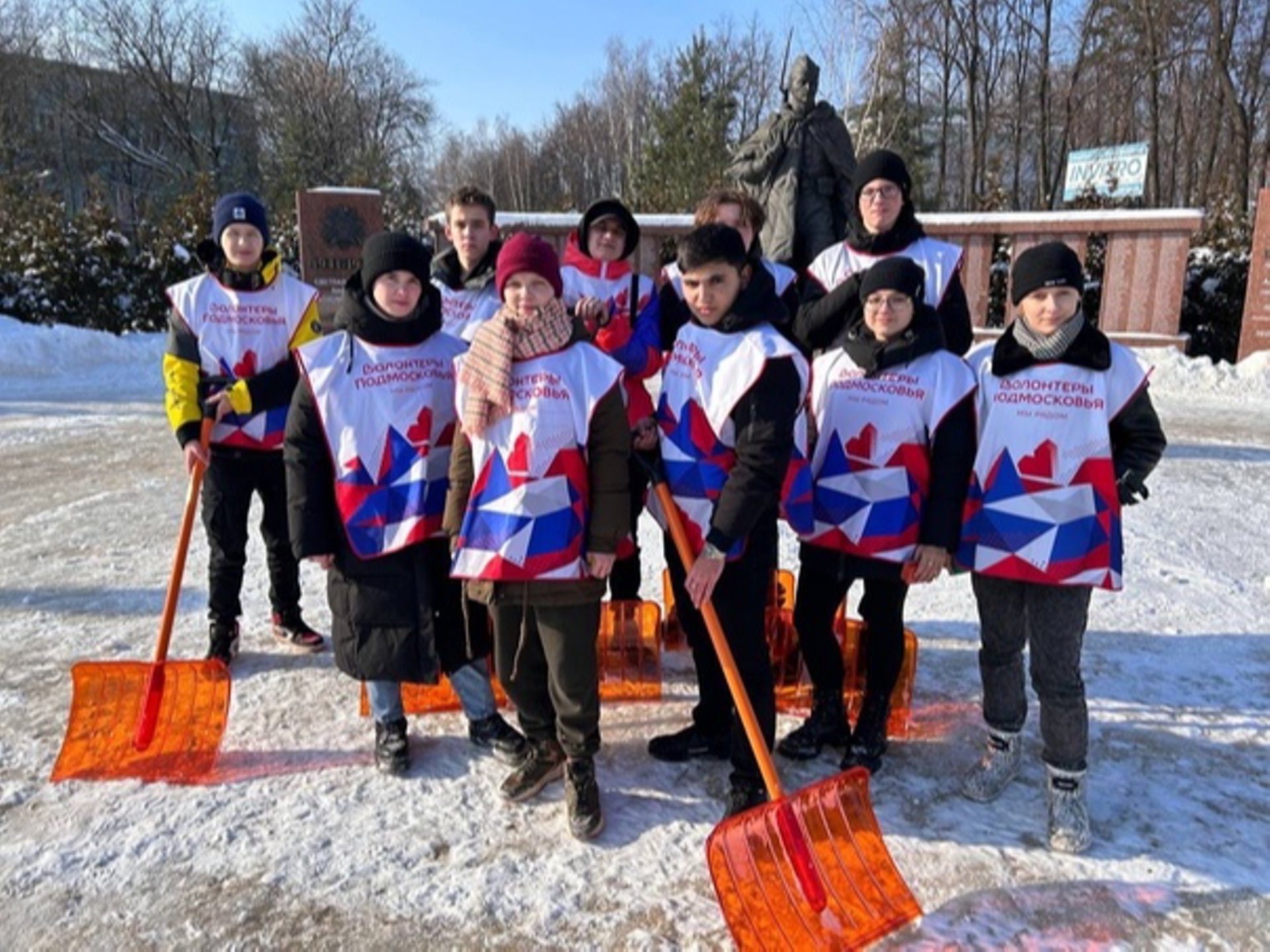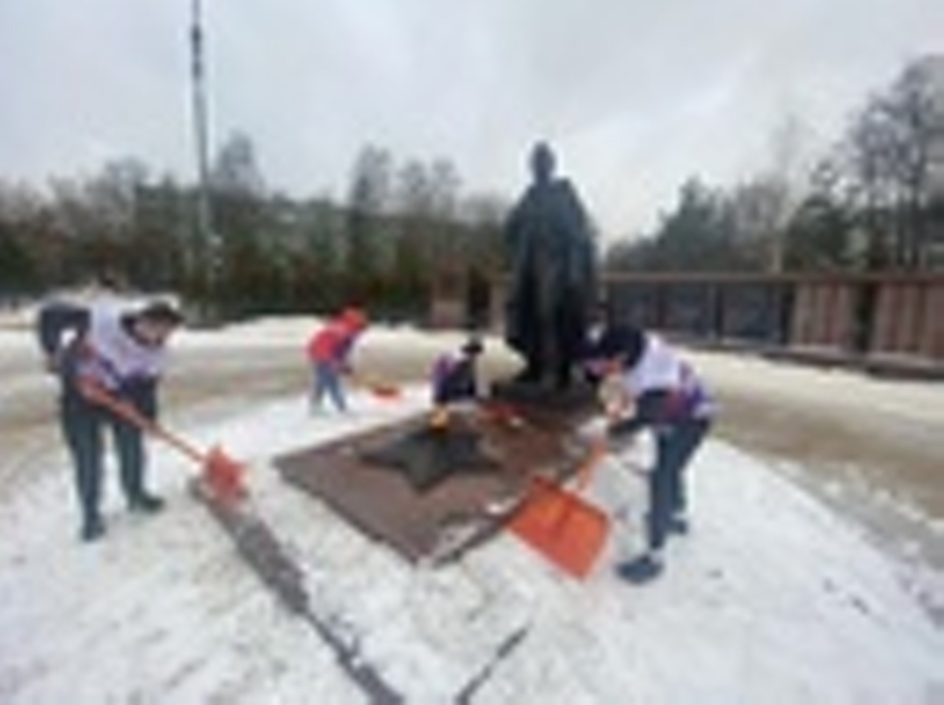 В предверии Дня Защитника Отечества , волонтеры Лосино-Петровского убрали снег у памятника.