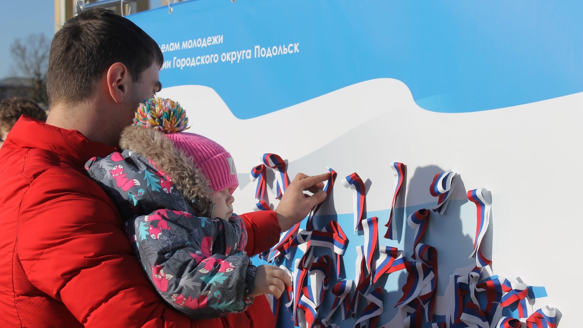 Концертная программа, растяжка флага РФ, посвящённые воссоединению Крыма с Россией на терриротрии Г.о. Подольск.