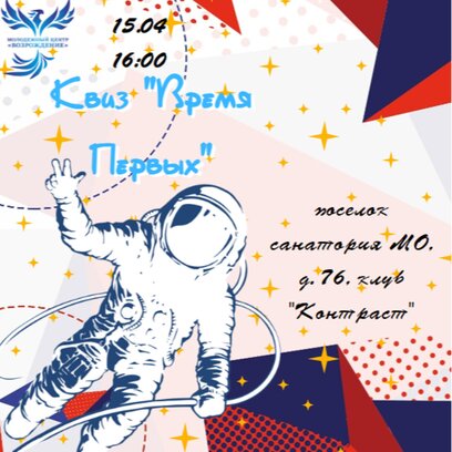 Клуб "Контраст" приглашает к участию в Квизе, посвящённому истории развития российской космонавтики. Игра будет включать в себя 3 раунда: - «С мечтой о космосе» (биография К. Циолковского);