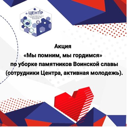 Акция «Мы помним, мы гордимся» по уборке памятников Воинской славы (сотрудники Центра, активная молодежь).