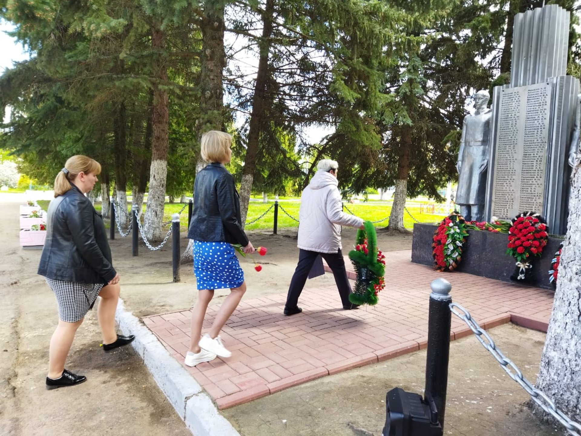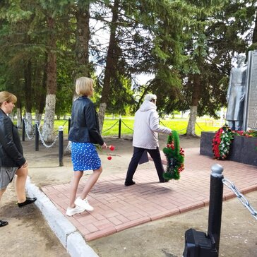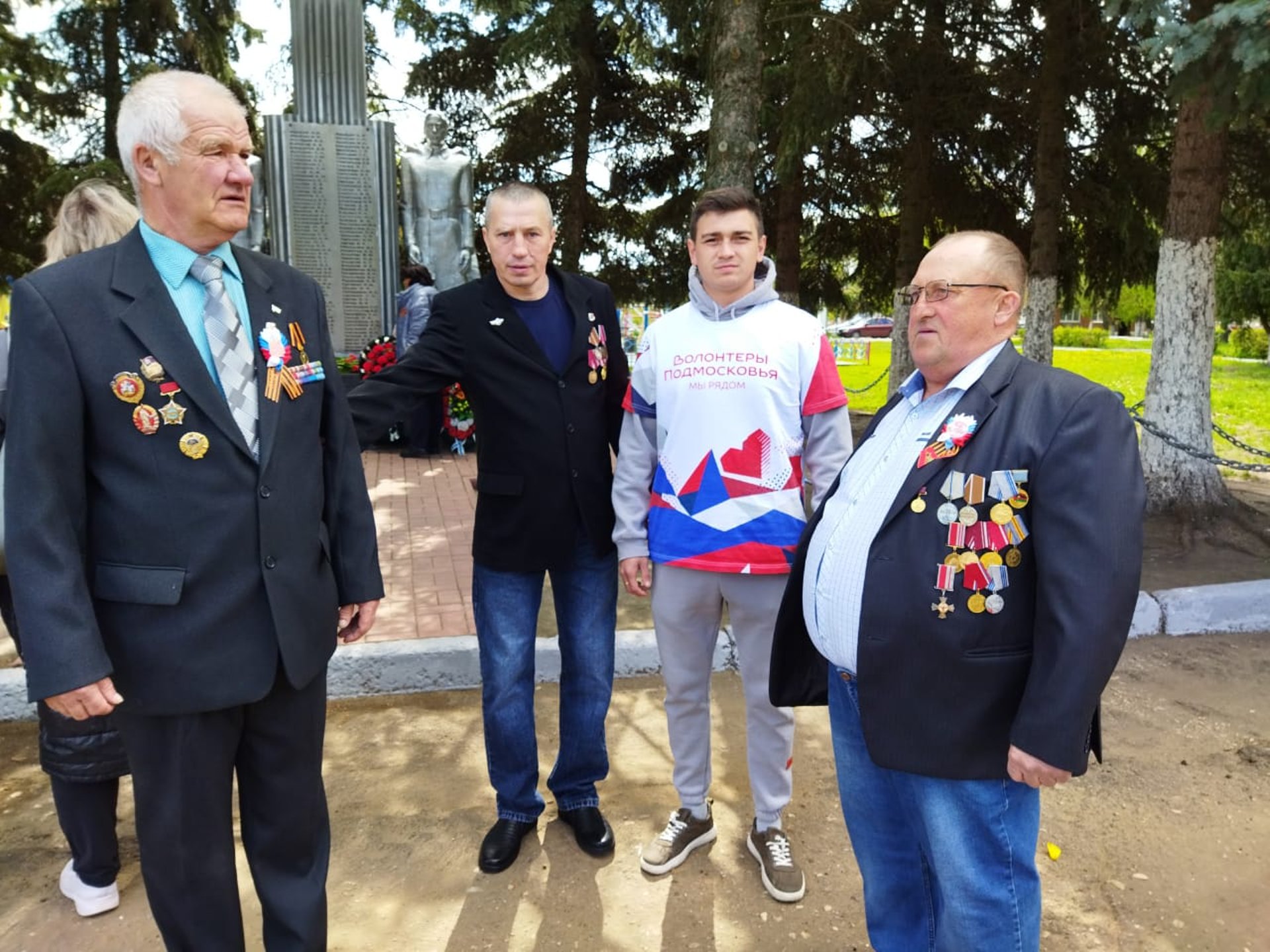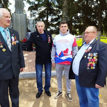 Волонтеры принимают активное участие в мероприятии: встречают гостей, раздают им цветы для возложения.