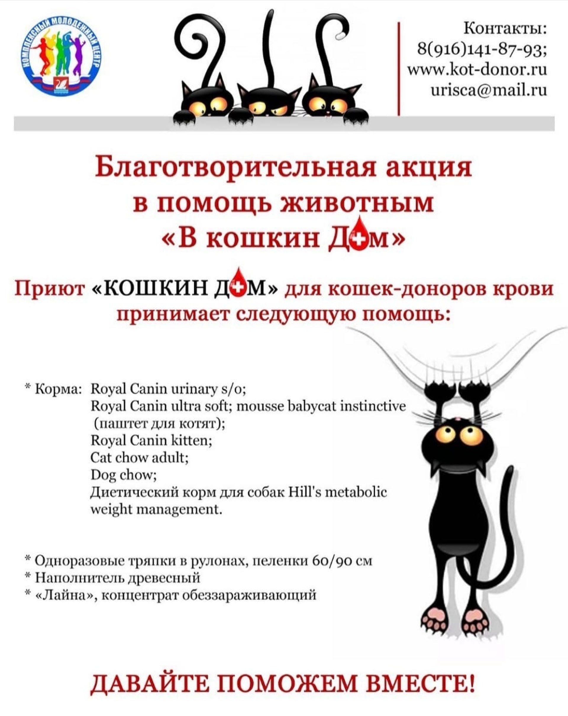 Волонтёры Подмосковья активно начали сбор кормов и необходимых средств для приюта, где содержатся кошки-доноры.