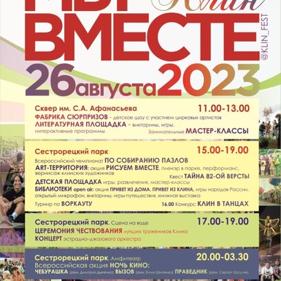 26 АВГУСТА КЛИН ОТМЕТИТ ДЕНЬ ГОРОДА! ЧАСТЬ МЕРОПРИЯТИЙ ПРОЙДЁТ В ПАРКЕ "СЕСТРОРЕЦКИЙ".