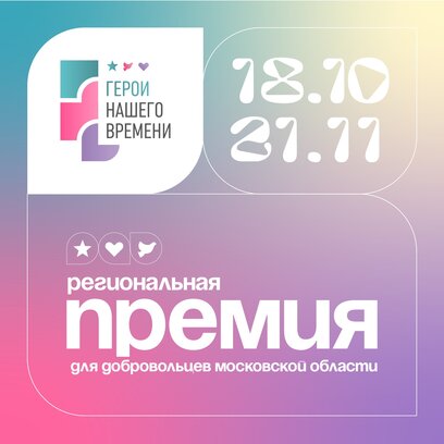 Вторая ежегодная Премия в Московской области, главная цель которой повышение престижа волонтерской (добровольческой) деятельности в Московской области, а также вовлечение молодежи в общественную жизнь региона.