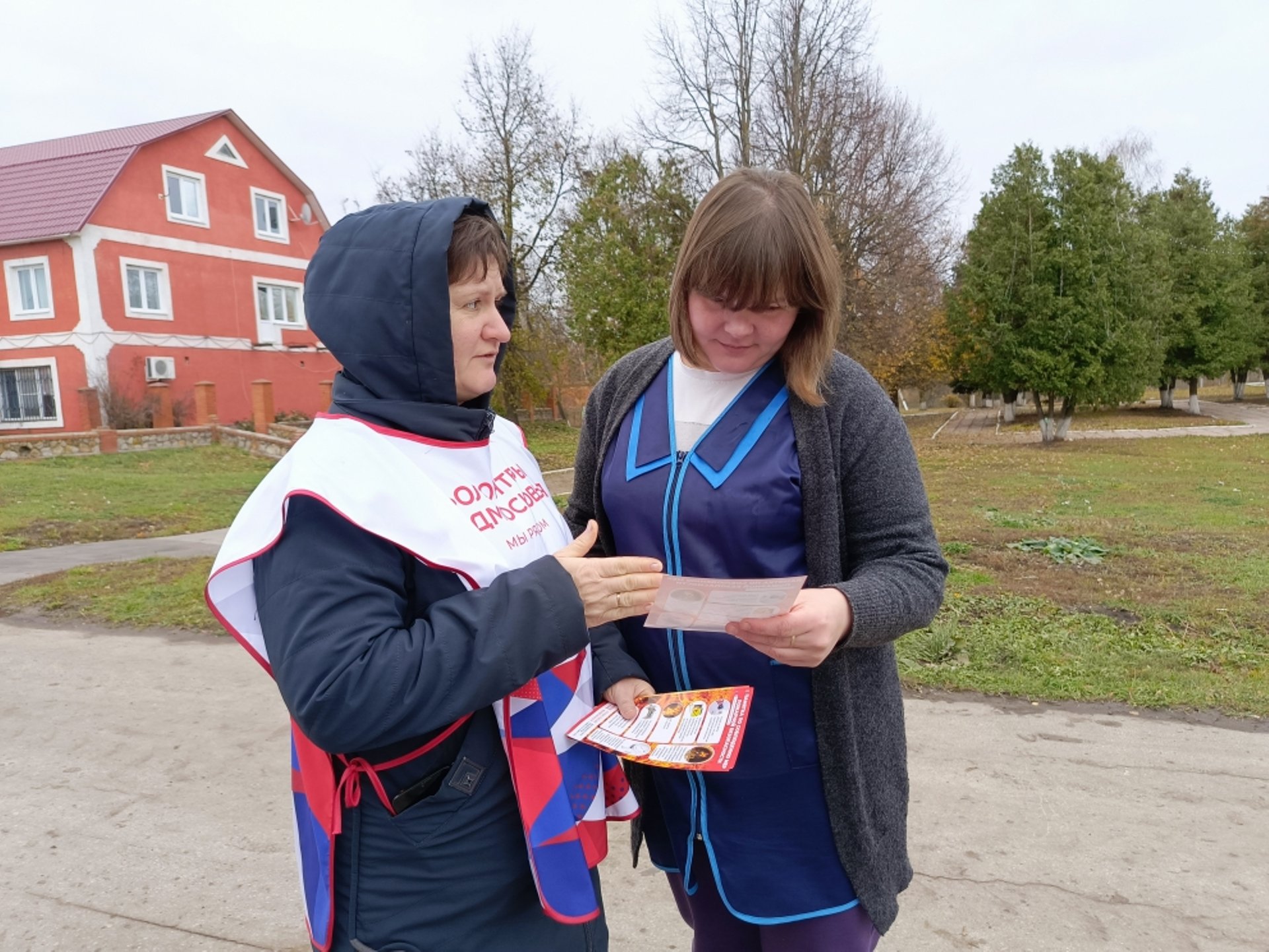 Волонтёры информируют жителей о правилах использования обогревательных приборов. Раздают памятки.