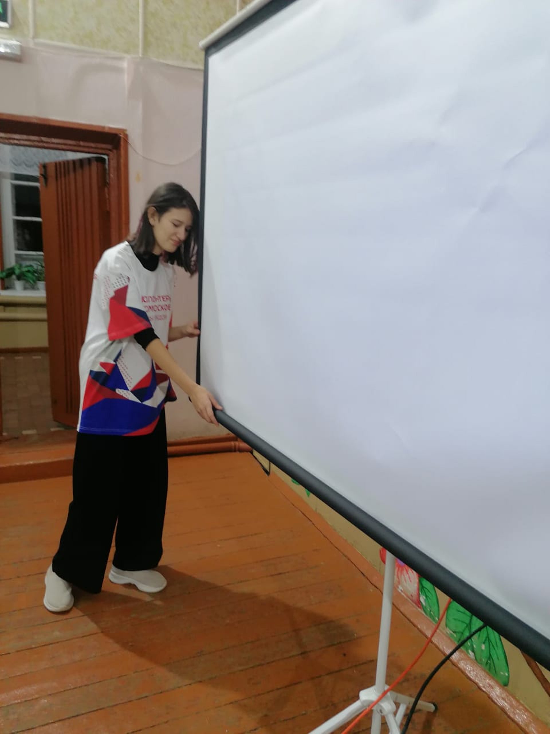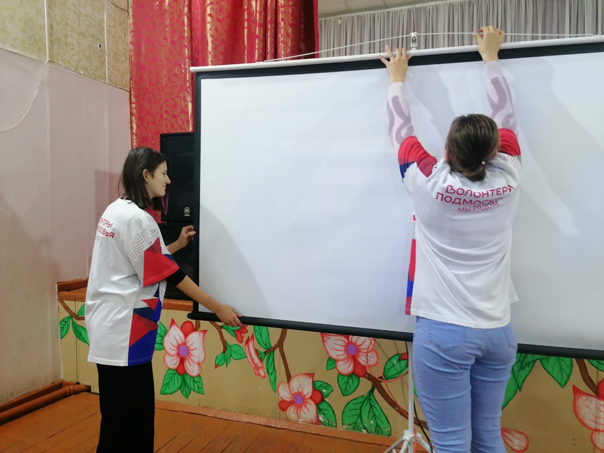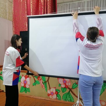 Мероприятие посвящённое первой женщине космонавту -Валентине Терешковой. Волонтёры оформляют зал, для проведения мероприятия, расставляют стулья, устанавливают проектор, готовят презентацию.