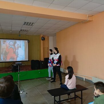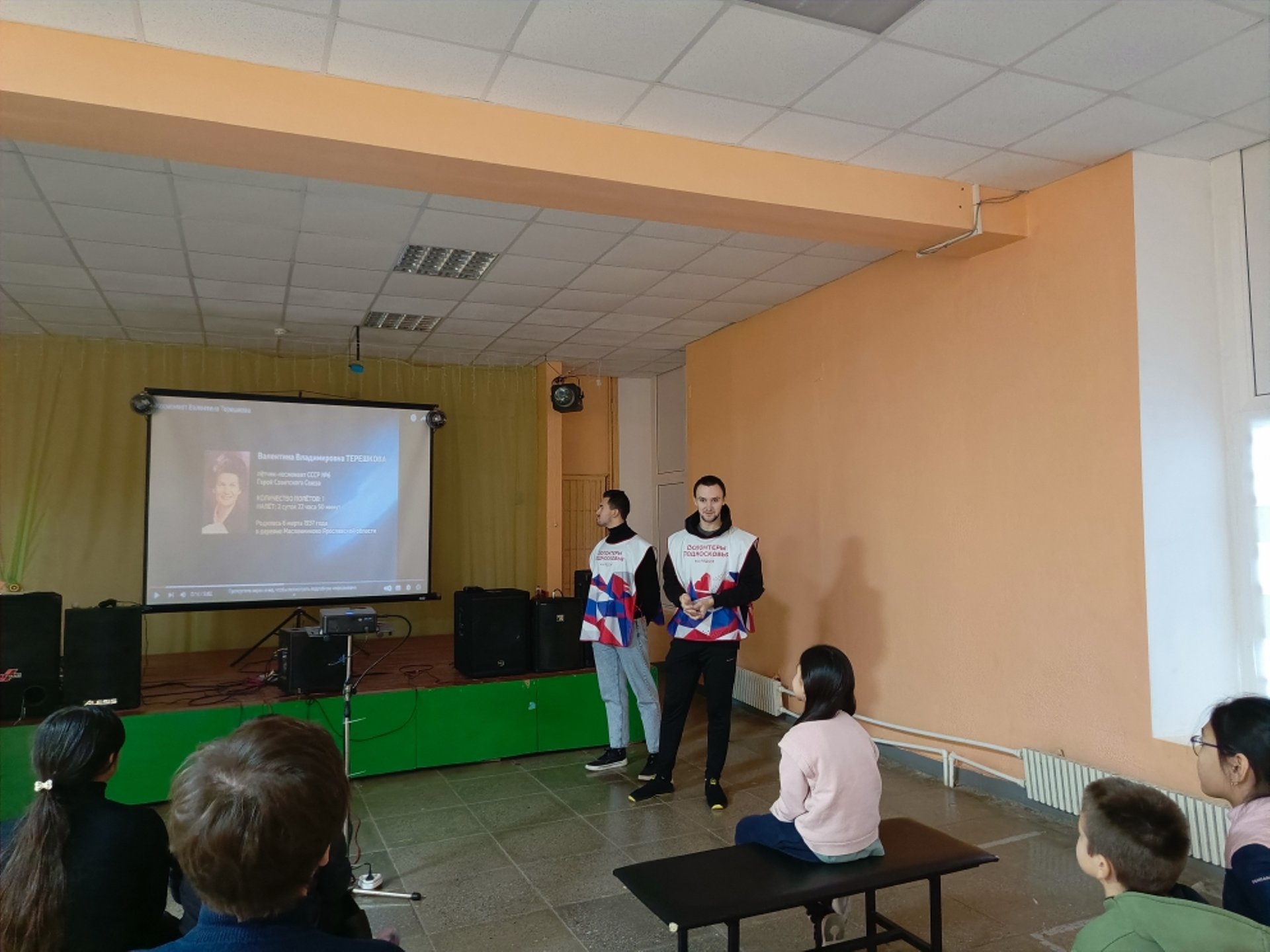 Мероприятие посвящённое первой женщине космонавту -Валентине Терешковой. Волонтёры оформляют зал, для проведения мероприятия, расставляют стулья, устанавливают проектор, готовят презентацию.