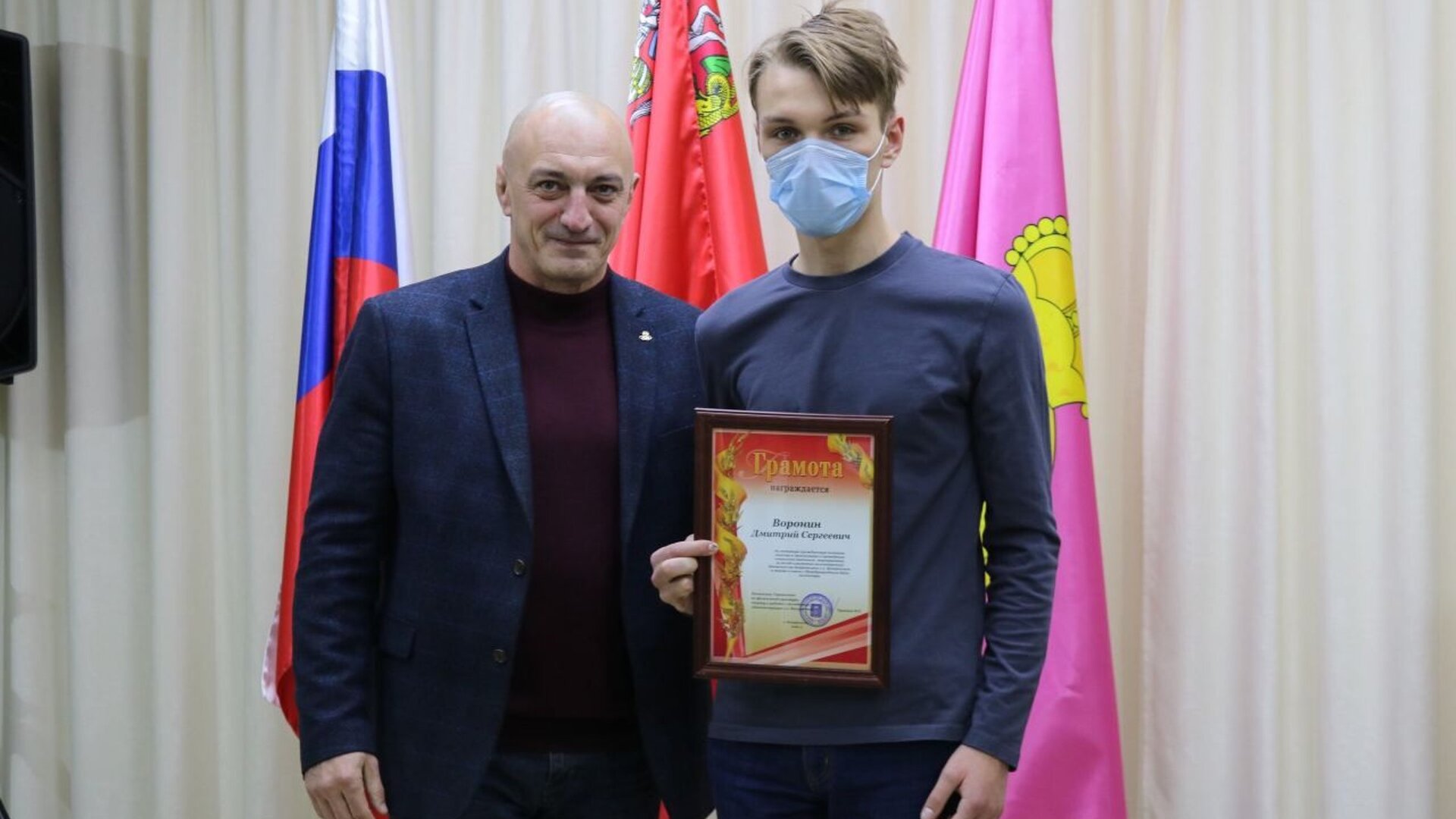 Депутат Московской областной думы Аксаков Евгений Валерьевич и Начальник Управления по физической культуре, спорту и работе с молодёжью Администрации городского округа Воскресенск Чупаков Валерий Евгеньевич поздравили волонтёров с праздником и наградили благодарственными письмами за активное участие в волонтёрской деятельности по оказанию помощи населению Московской области в период борьбы с эпидемией новой коронавирусной инфекции COVID-19.