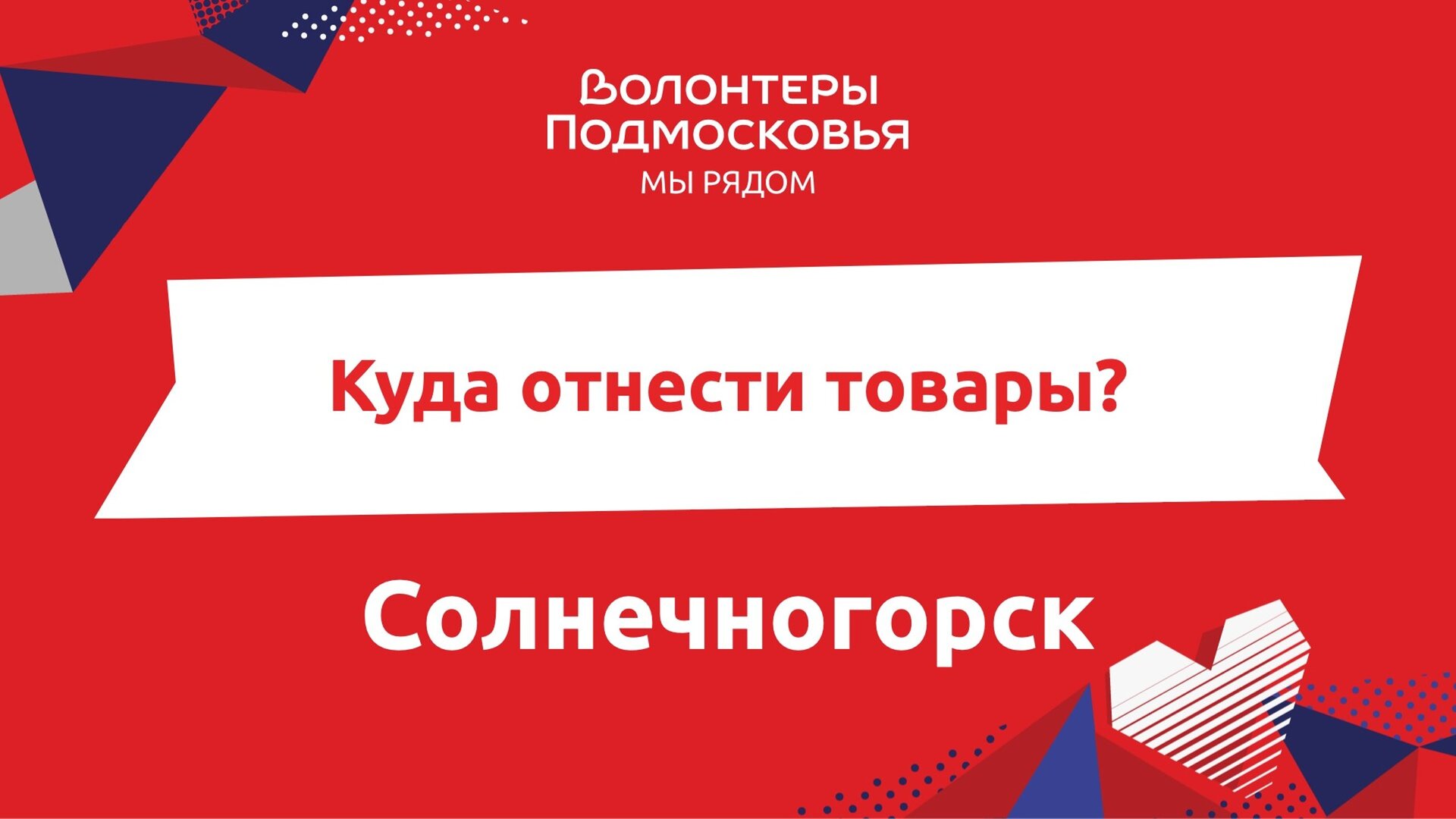 Пункты сбора помощи:Солнечногорск г.о., г. Солнечногорск, ул. Вертлинская, д. 1, МБУ МЦ "Подсолнух" время работы: 10.00-17, перерыв с 13 до 14, телефон: 89969790674