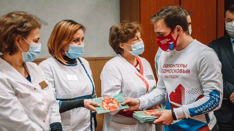 Волонтеры Подмосковья вручили медикам красной зоны 29 тысяч сертификатов компании "Чистая линия".