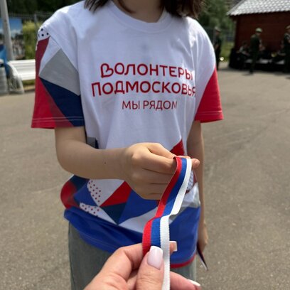 В честь Дня России Волрнтеры Подмосковья г.о. Краснознаменск раздавали ленты триколор на улицах города!С праздником 🤍