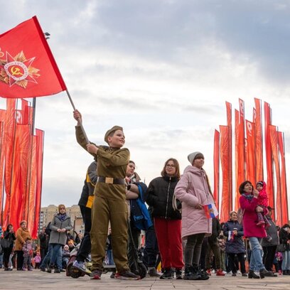 Раздача георгиевских ленточек