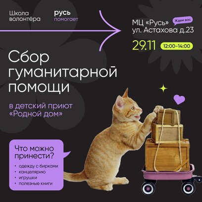 В рамках проекта «Школа волонтёра» наши ребята организуют сбор подарков в детский приют «Родной дом». Давайте вместе поможем детям почувствовать нашу поддержку! Что можно принести? Новую одежду (с бирками) Канцелярию Игрушки Полезные книги
