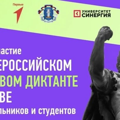 С 25 ноября по 1 декабря пиши диктант онлайн или приходи на площадки: в отделениях Движения Первых, вузах Ассоциации юристов России, Общественной палате России, Университетах «Синергия»!