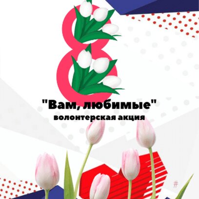 5 марта, в рамках празднования Международного женского дня, состоится молодежная поздравительная акция "Вам, любимые", в ходе которой поздравим представительниц прекрасного пола с наступающим праздником и вручим праздничные открытки. От волонтеров требуется помощь в организации и проведении мероприятия.