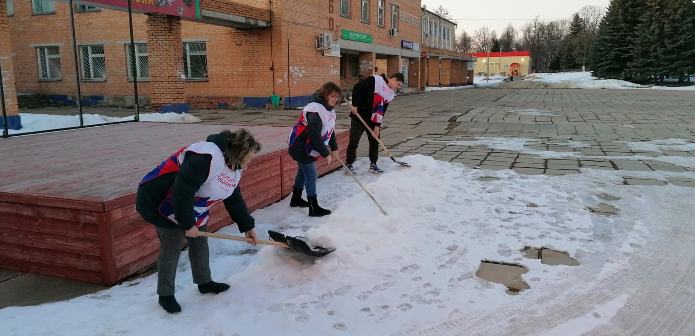 Уборка снега на площади.