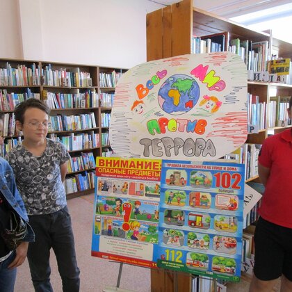 Мы против террора! Раздача листовок нашим читателям центральной библиотеки. Доброе дело проходит в Центральной библиотеке.
