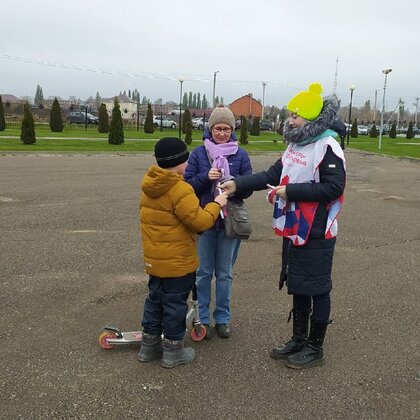 ПодробнееВолнтёры, раздают ленточки триколор жителям, в честь празднования Дня Народного Единства