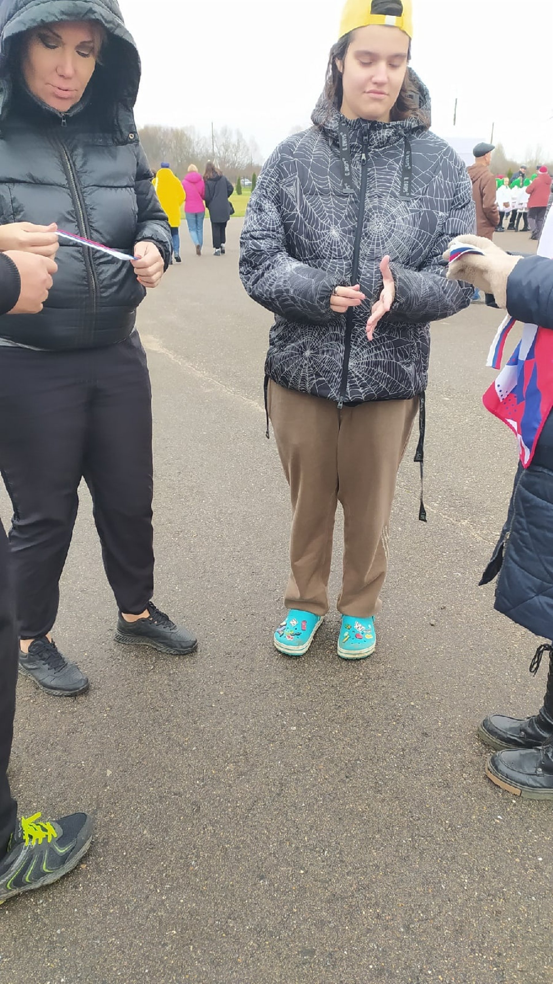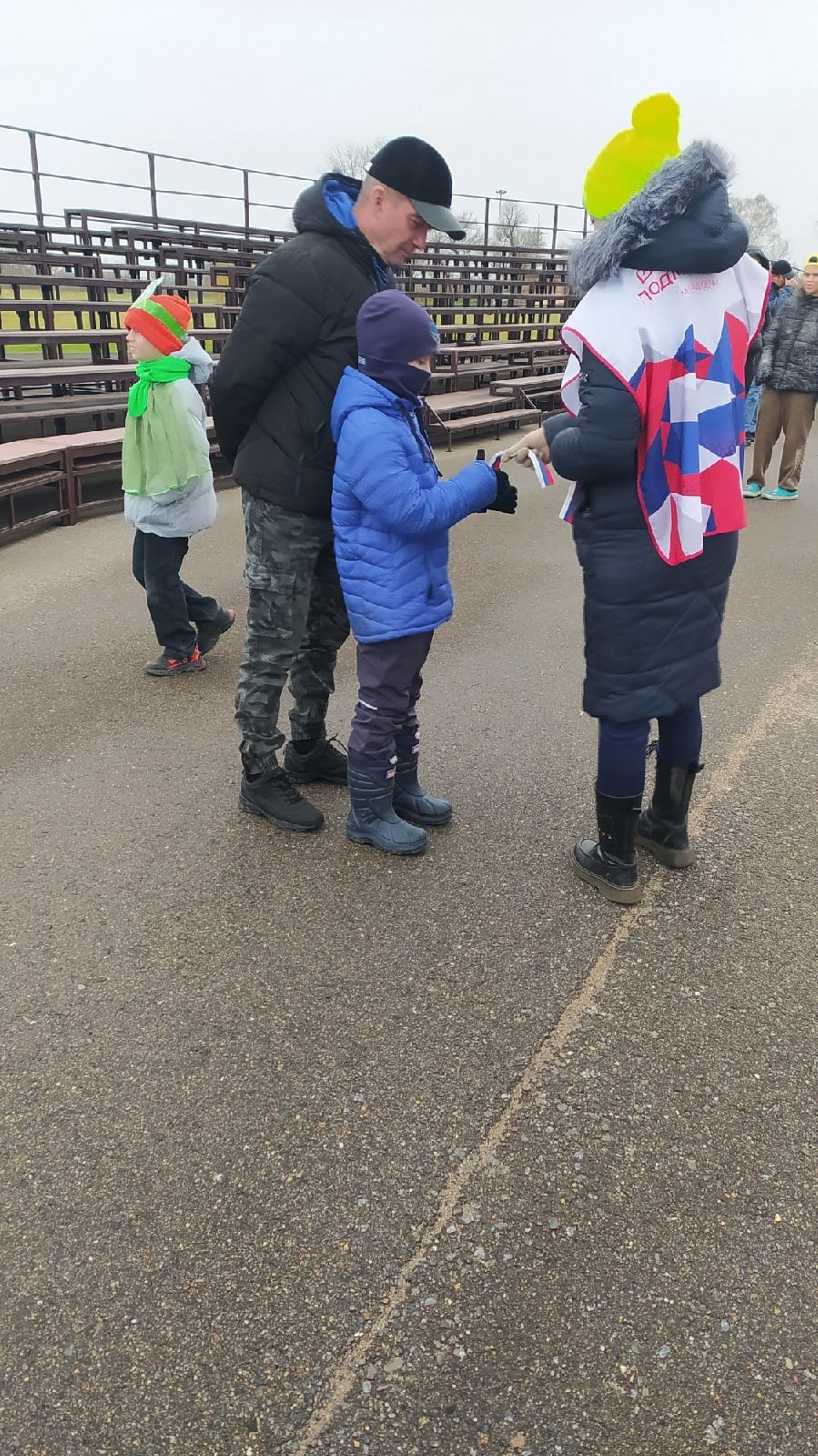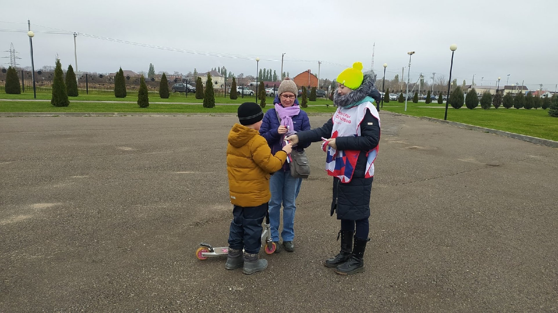 Волнтёры, раздают ленточки триколор жителям, в честь празднования Дня Народного Единства