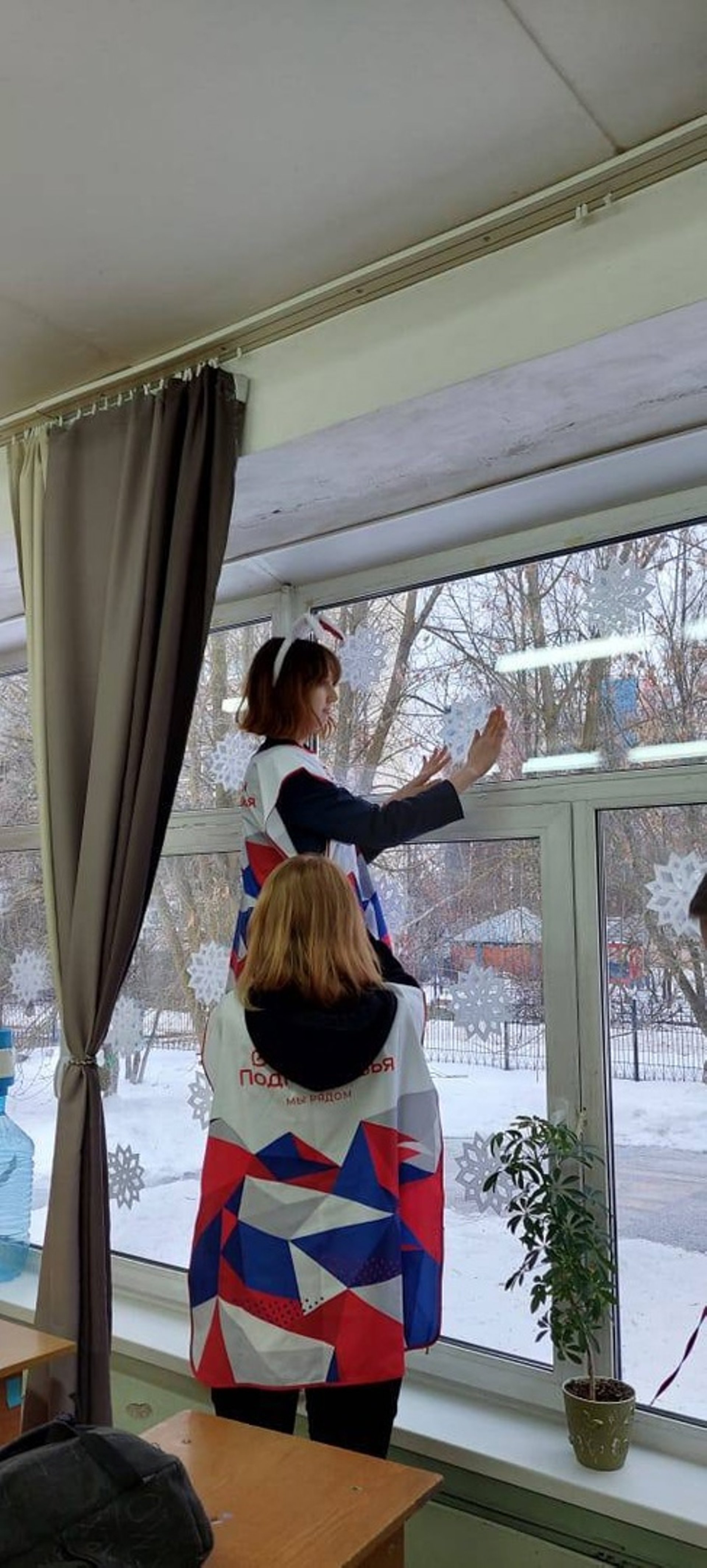 Волонтеры Подмосковья г.о Краснознаменск в рамках Всероссийской акции «Новогодние окна» украшают рисунками окна общественных учреждений!