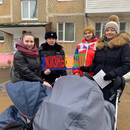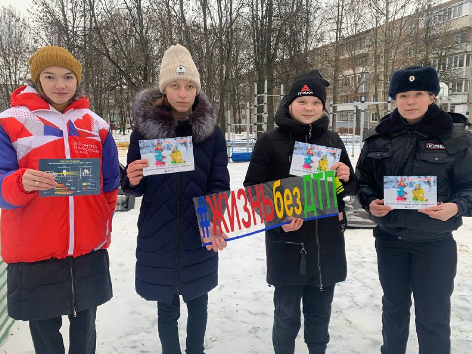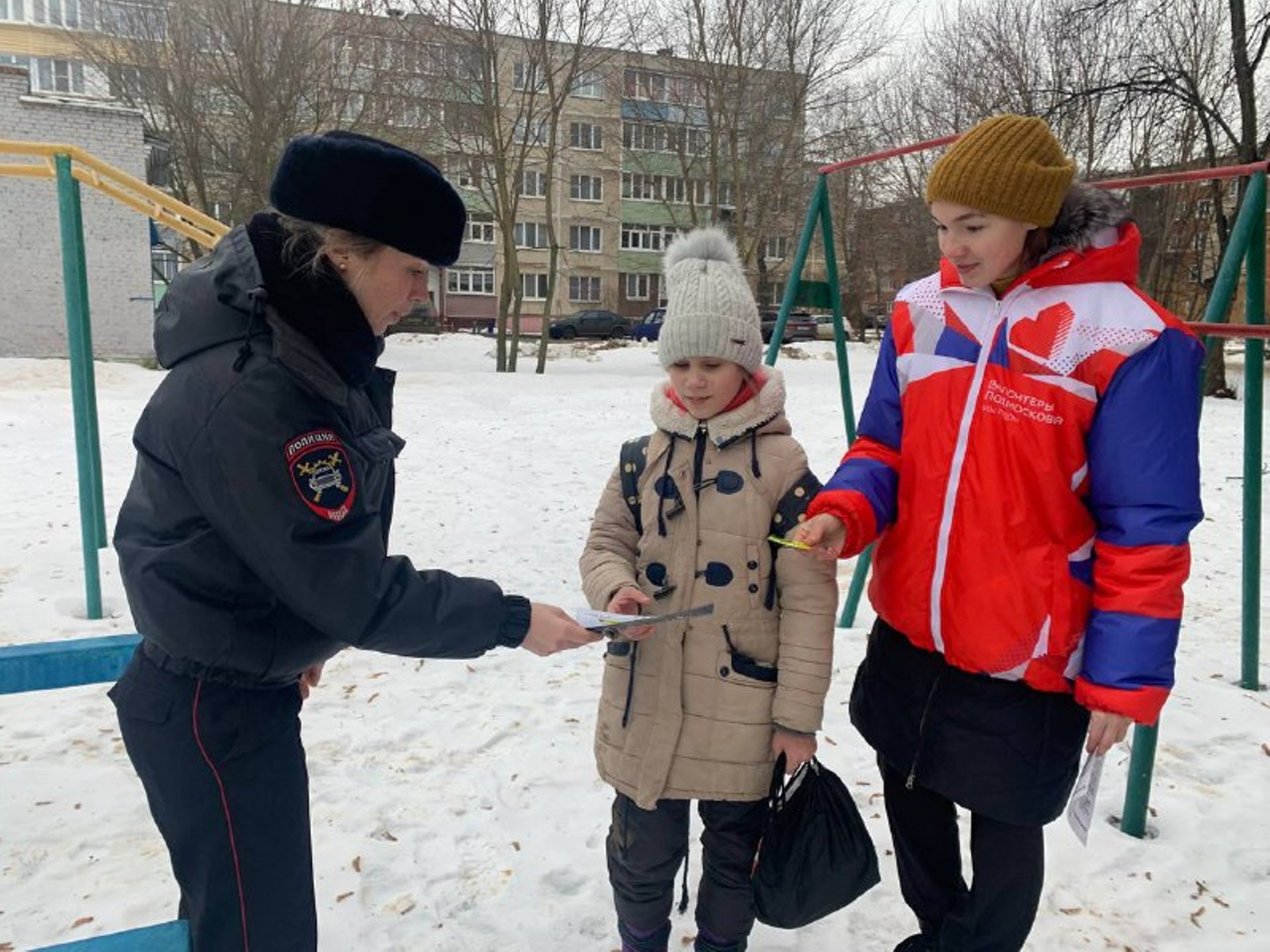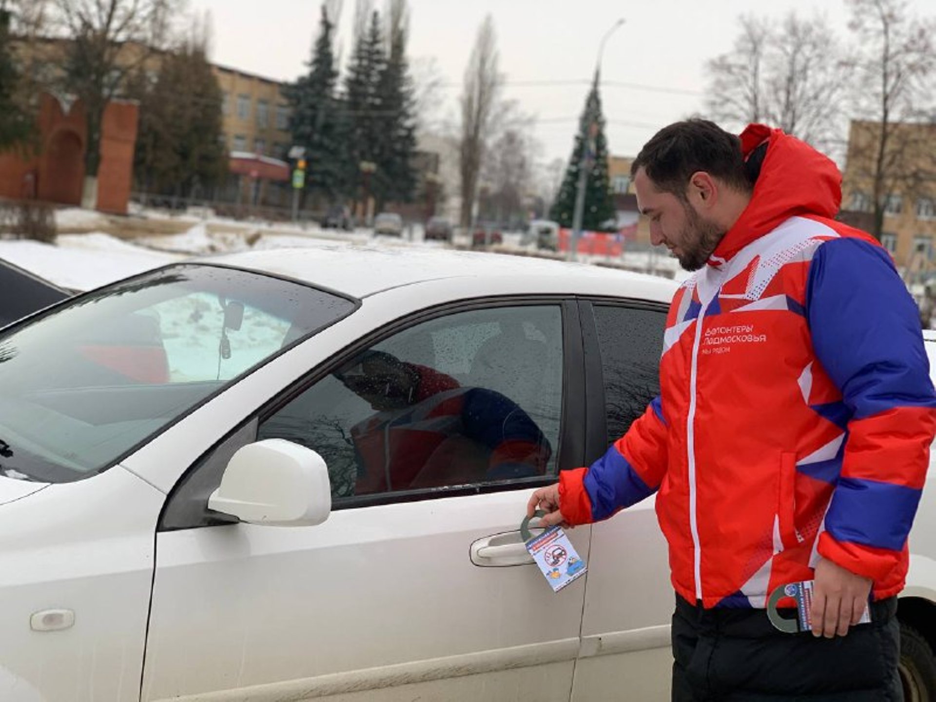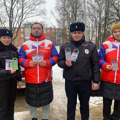 Представители дорожной полиции вместе с Волонтерами распространяют листовки с тематикой акции жителям дворов с призывами использования детских удерживающих устройств при перевозке малышей и наличия на верхней одежде световозвращающих элементов.