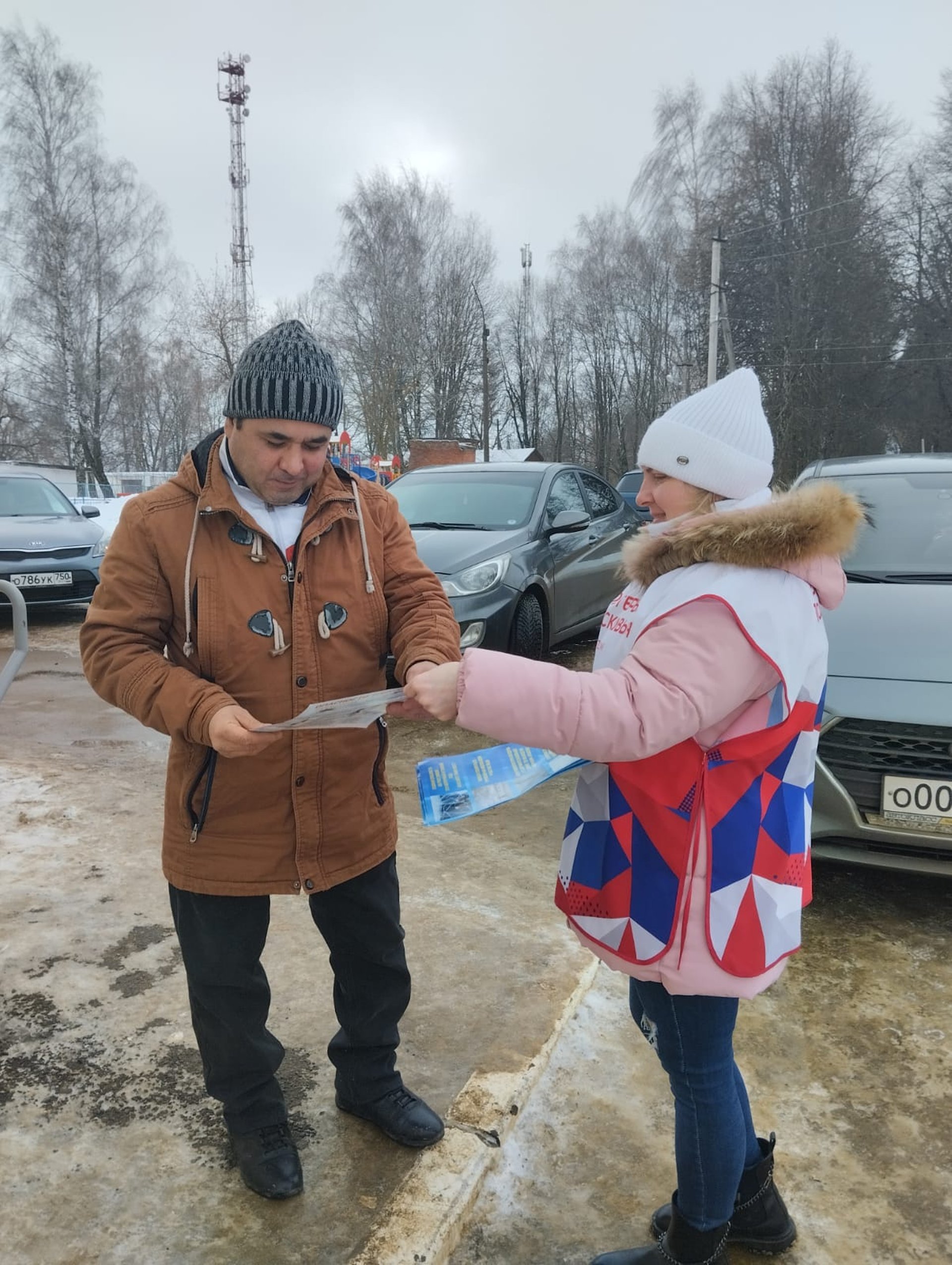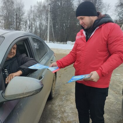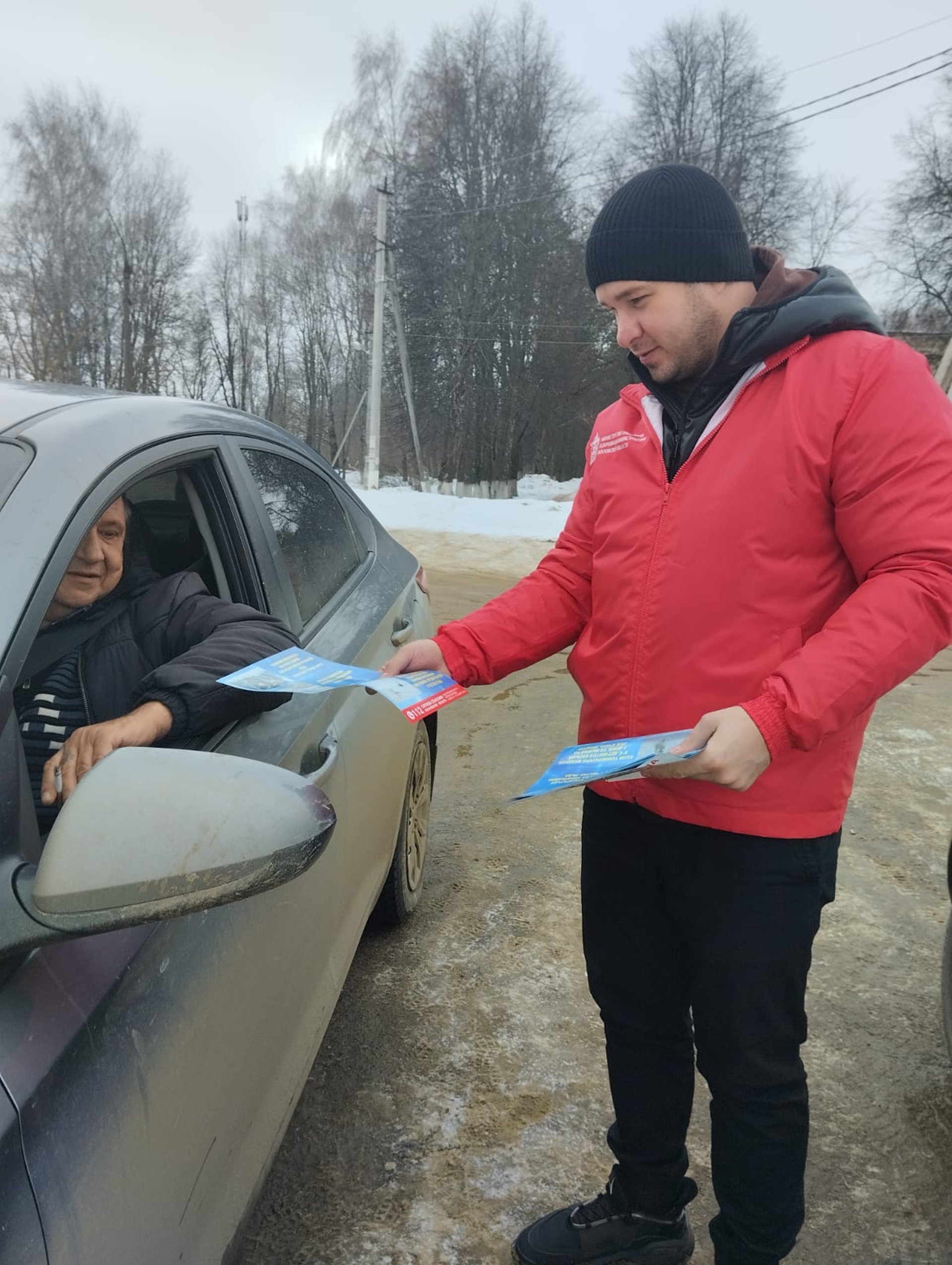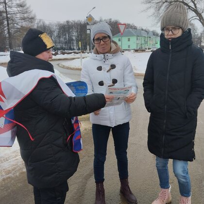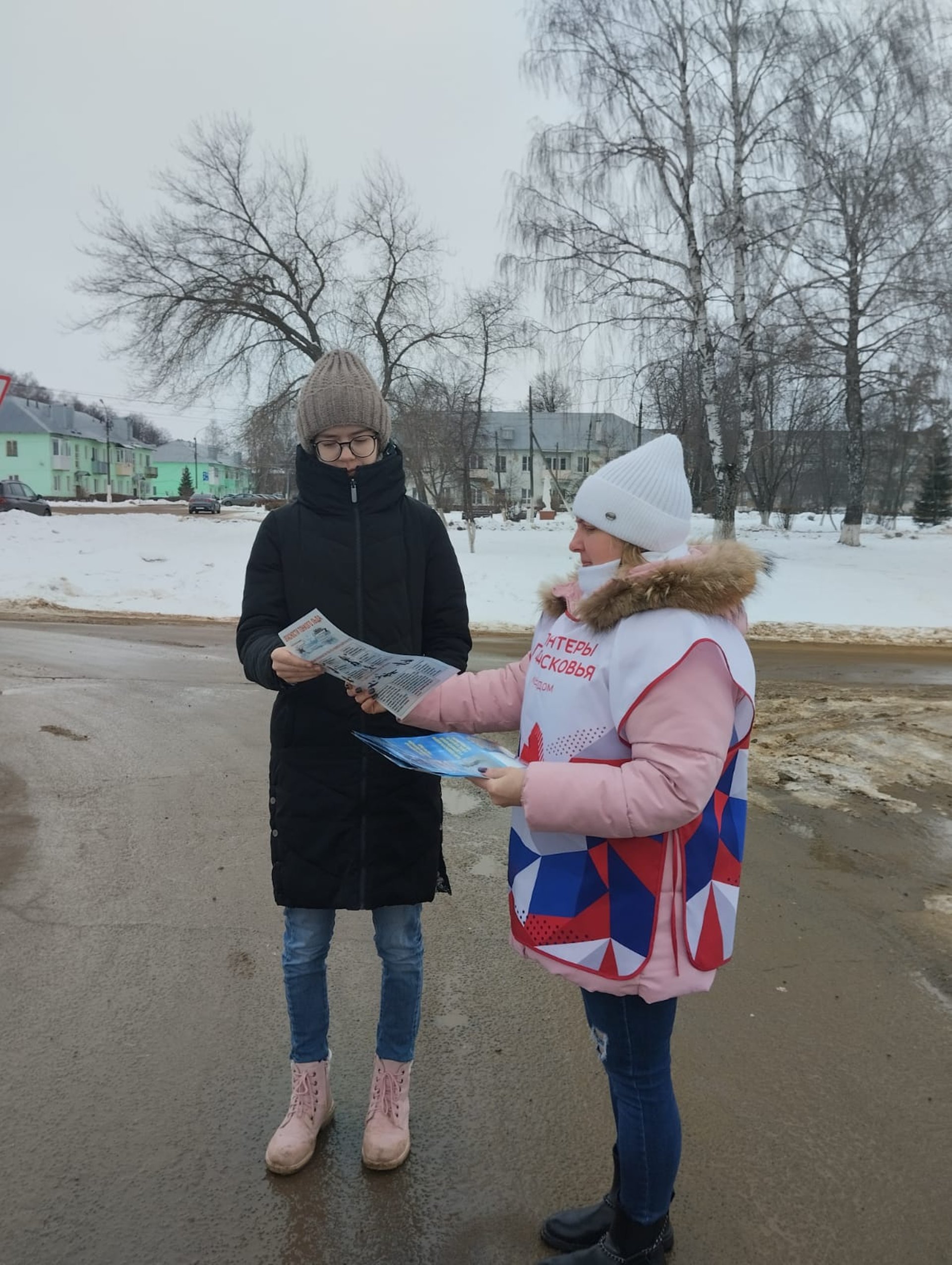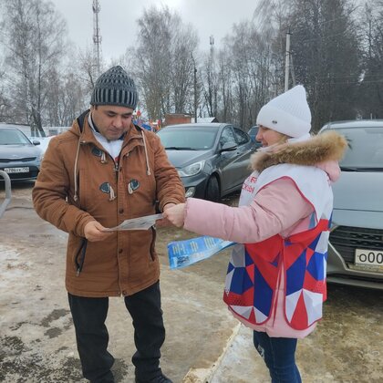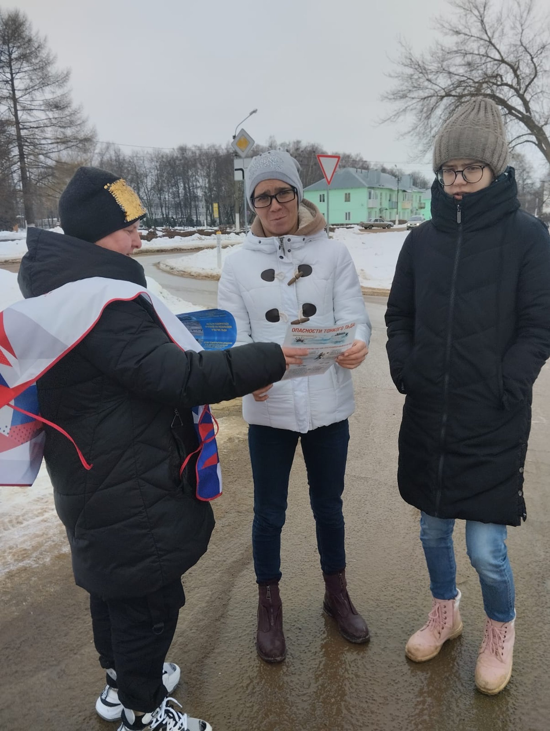 Раздача волонтёрами г.о. Серебряные Пруды листовки и памятки населению об опасности тонкого льда