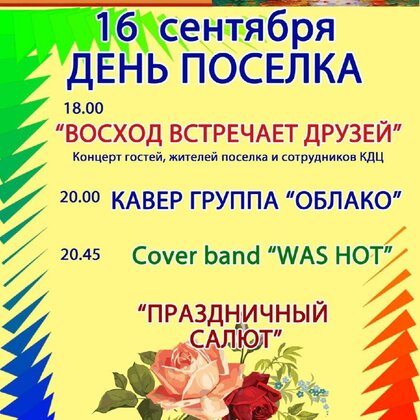 Дорогие друзья, ждем всех 16 сентября на Дне поселка Восход!🤗