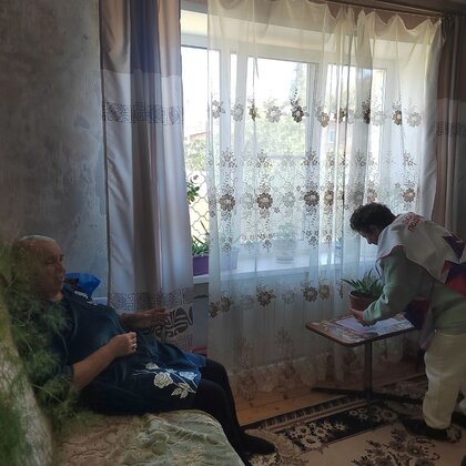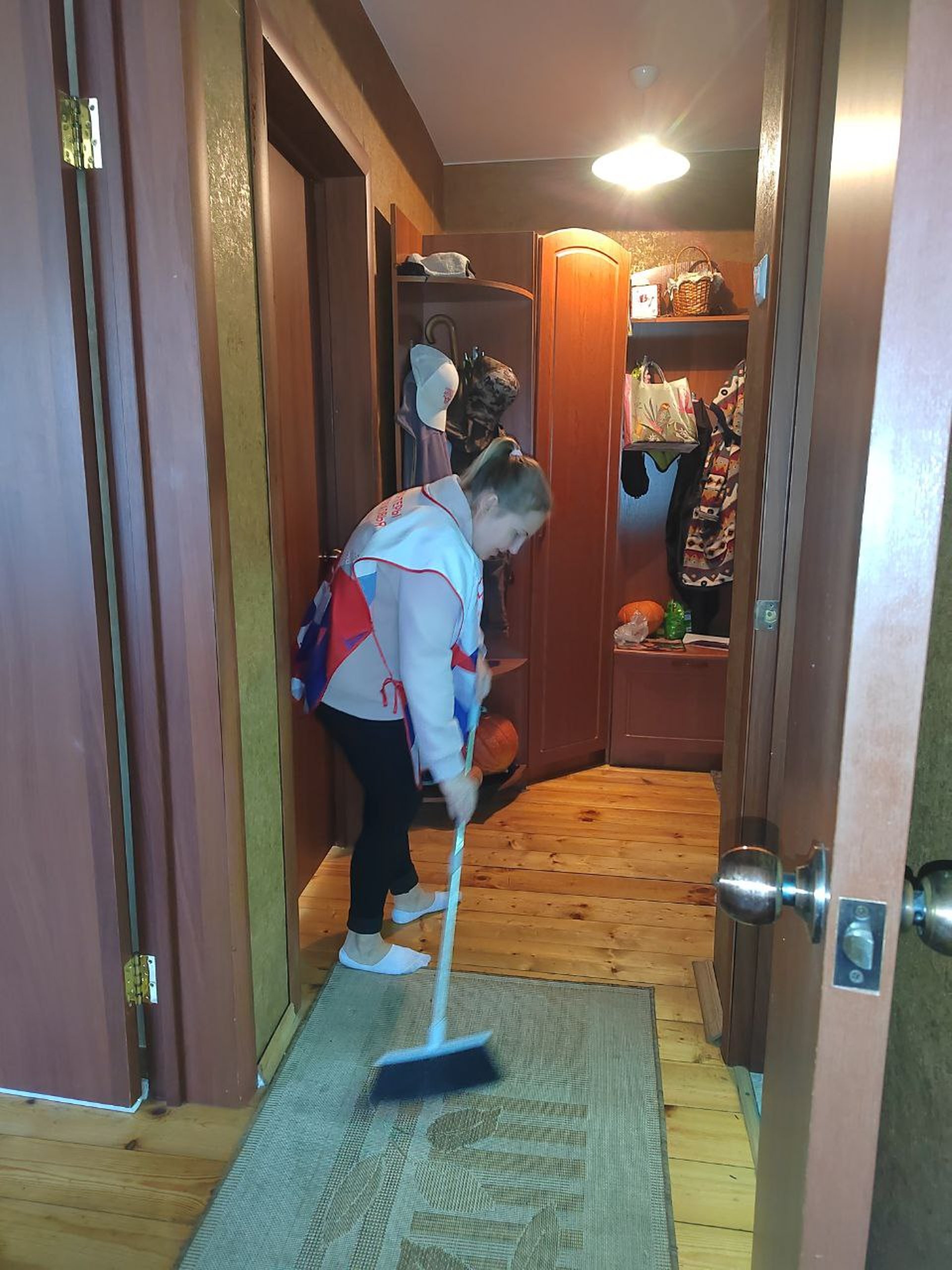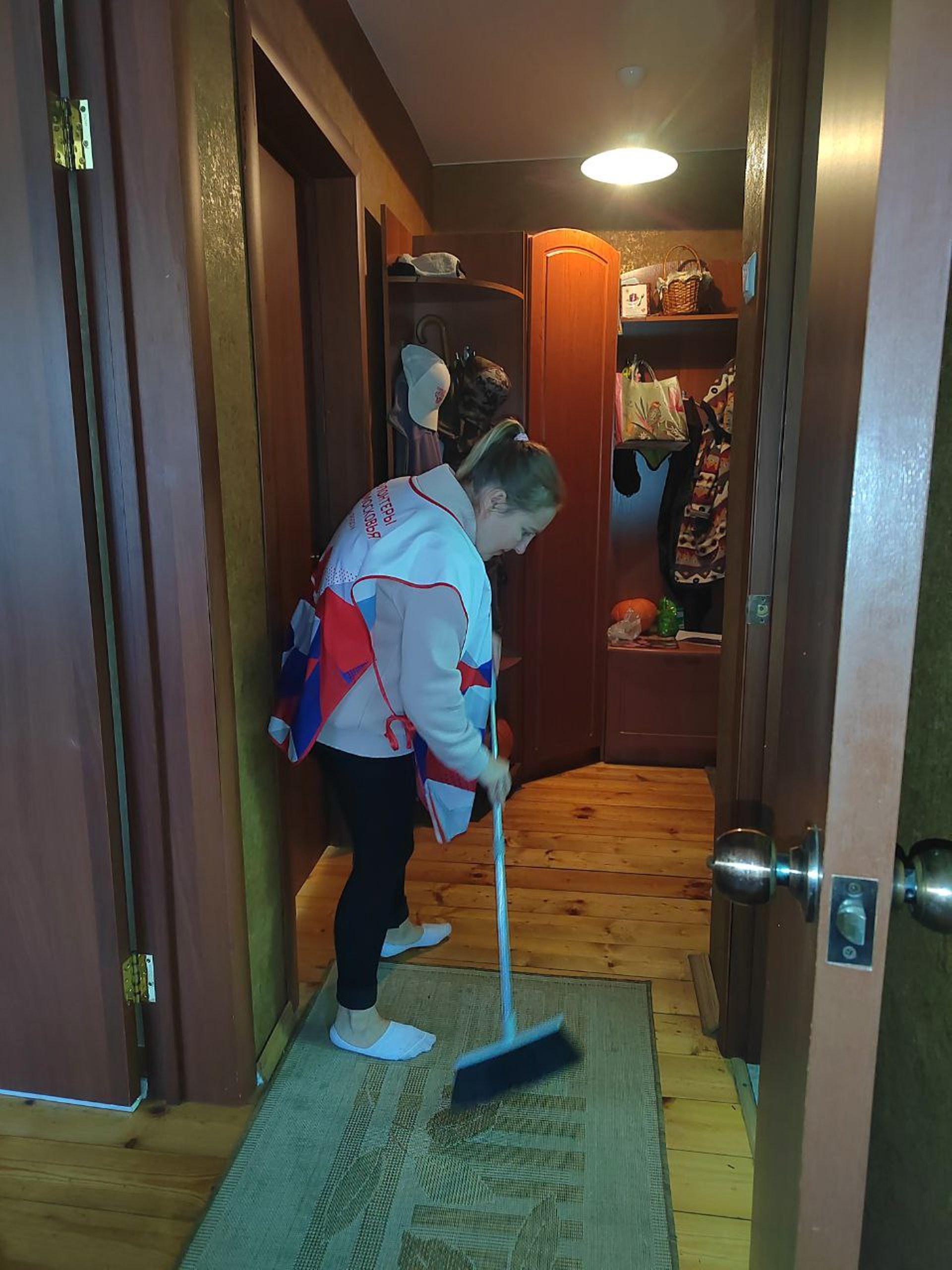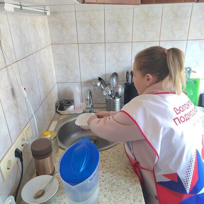 Волонтёры помогут одинокому пенсионеру в уборке квартиры, помоют полы посуду, протрут пыль, вымоют окна.