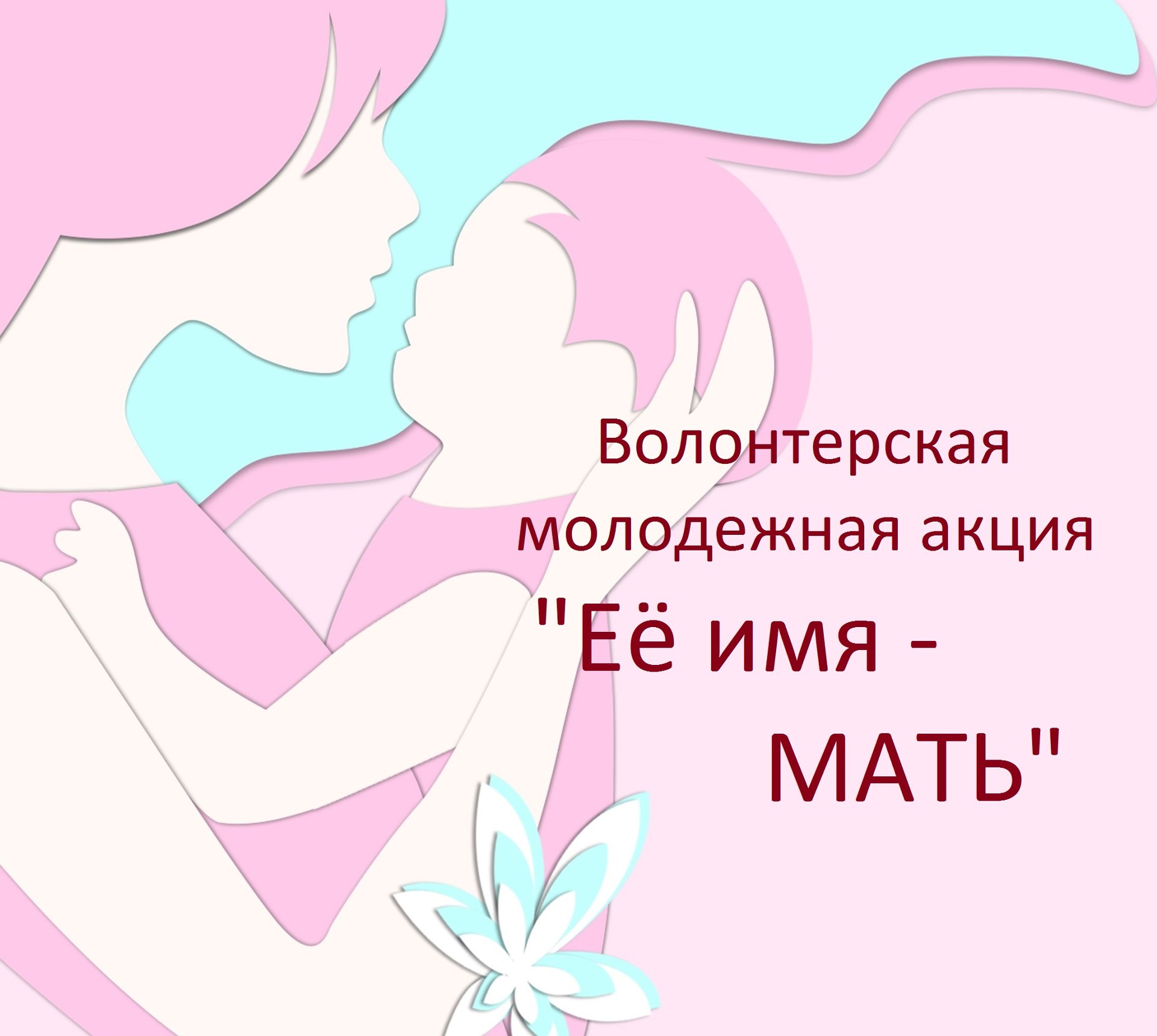 28 ноября, в рамках празднования Дня матери, пройдет волонтерская молодежная акция "Её имя - мать". Цель данной акции - воспитание семейных ценностей, поддержать традиции бережного отношения к женщине и особенно отметить значение в нашей жизни главного человека - матери.