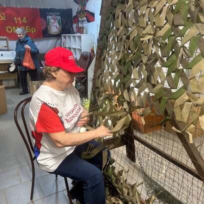 Серебряные волонтёры плетут маскировочные сети для наших защитников