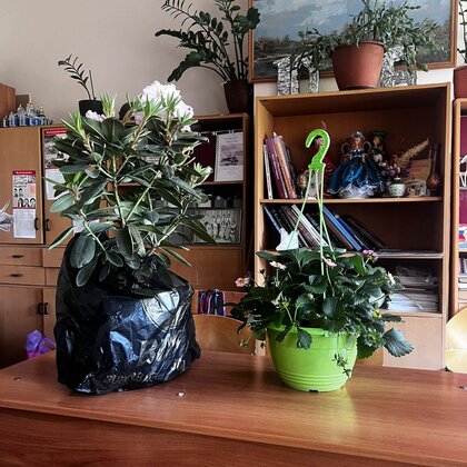 Полить цветы в реакциях,пересадить в горшки разросшиеся растения