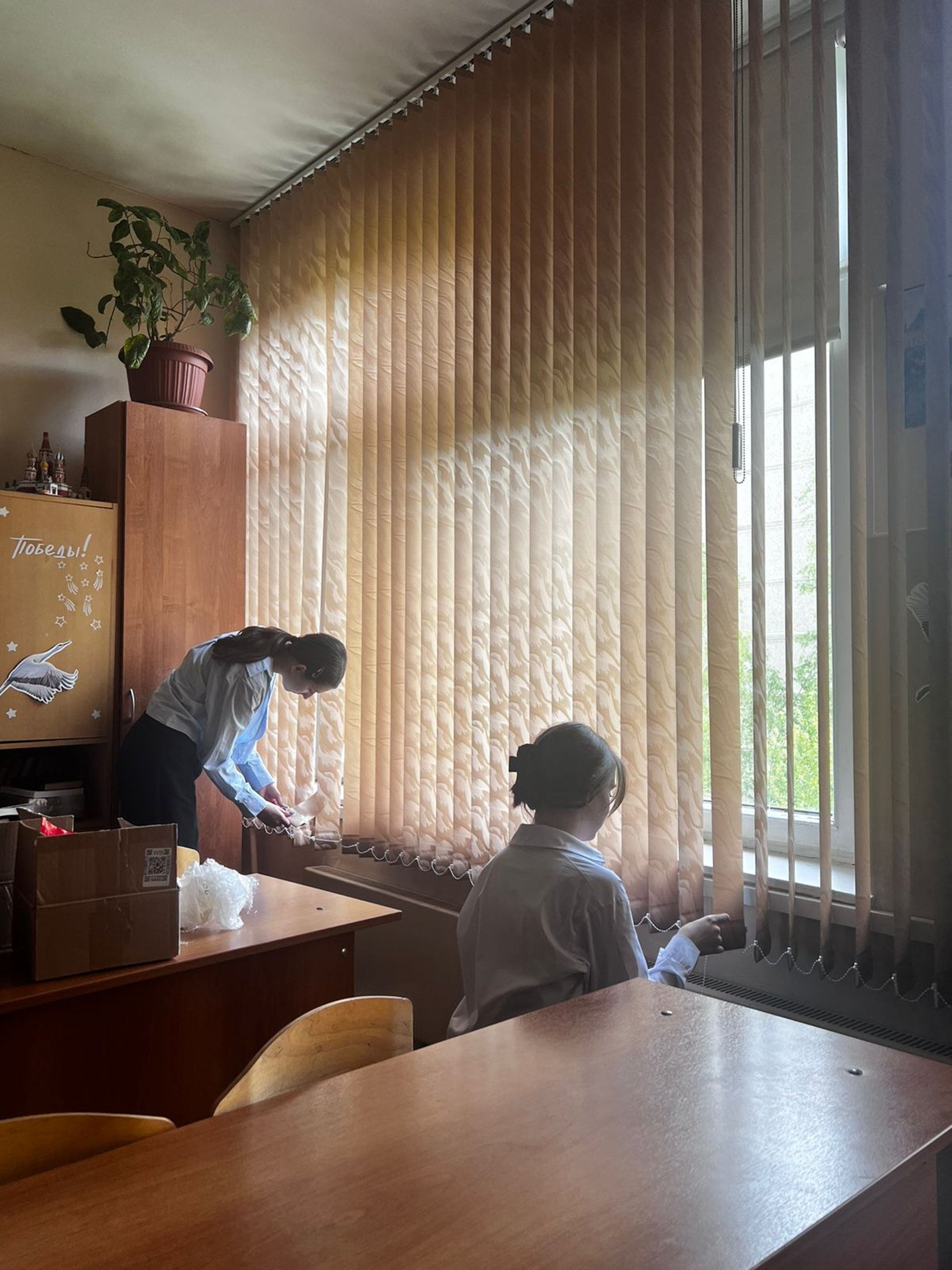 В классах установили новые жалюзи,необходимо вставить утяжелители и цепочки